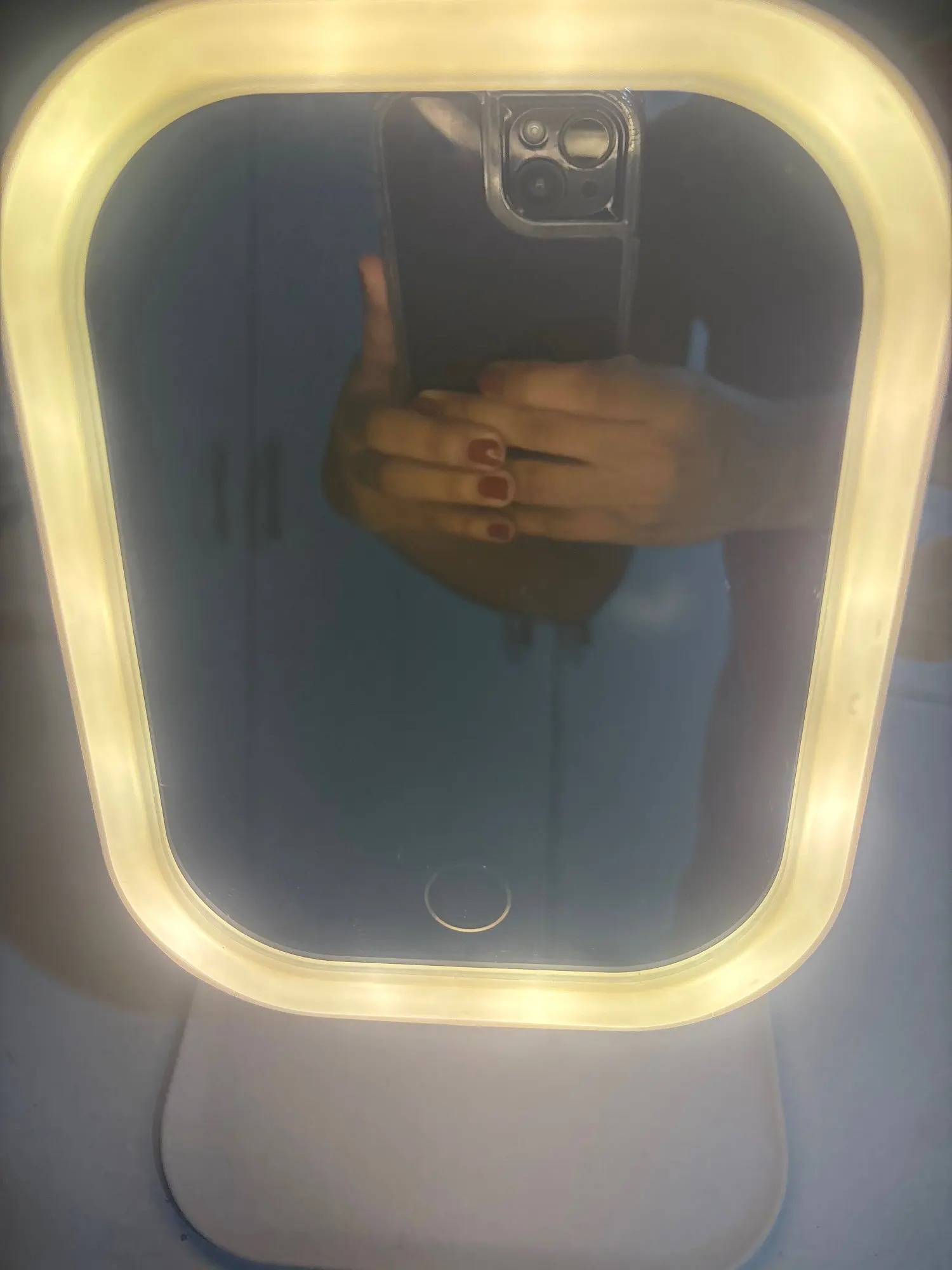 Say goodbye to bad lighting ruining your makeup with the LED Makeup Mirror. Designed with 3 dimmable color modes (warm, natural, cool), it lets you recreate any lighting environment so your look is always on point whether you are heading to class, work, or a night out. The touch-control design makes adjusting brightness effortless, while the sleek modern frame adds a touch of style to your desk or vanity. Perfect for makeup, skincare, or quick touch-ups, this mirror solves the problem of uneven lighting and helps you feel confident every time you step out.